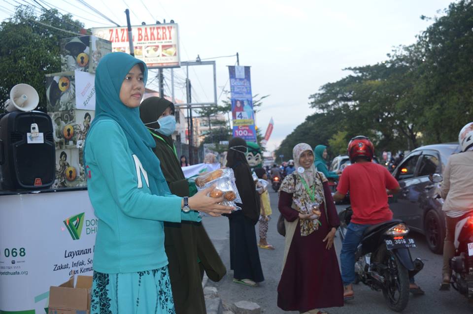 MAKASSAR– Ramadhan bulan yang tepat untuk berlomba-lomba dalam kebaikan. Salah satu bentuk dari kegiatan yang bisa dilakukan ialah berbagi takjil yang dimanfaatkan oleh Dompet Dhuafa Sulsel bersama Volunteer untuk terus mengalirkan kebaikan terhadap sesama. Aksi berbagi untuk kaum dhuafa , musafir, dan untuk saudara-saudara kita yang harus berbuka puasa di jalan atau terjebak  di jalanan ketika waktu buka puasa tiba. Melalui Program Ramadhan Berbagi Takjil, Dompet Dhuafa membagikan 2800 paket takjil bagi kaum dhuafa , musafir,  dan mereka yang terjebak macet di Jalanan saat buka puasa tiba (16/6/2017).