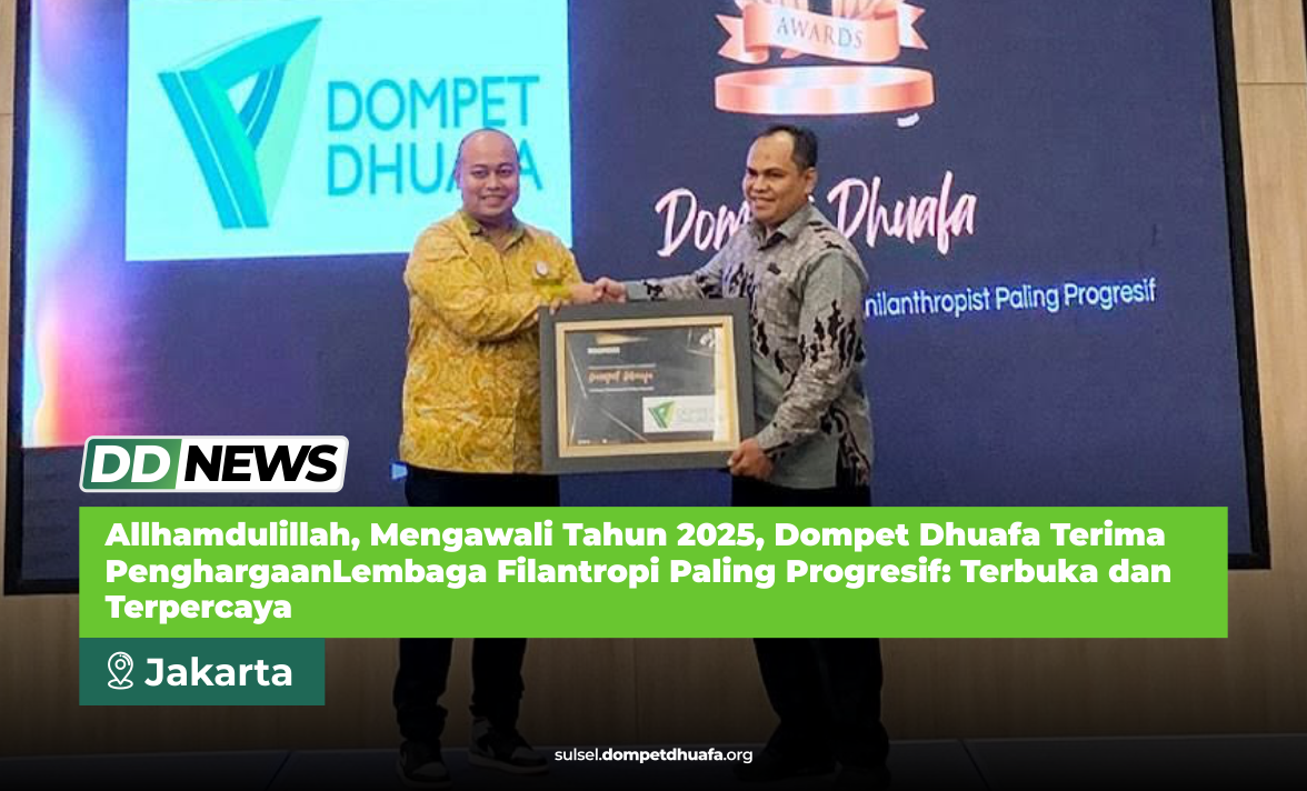 Dompet Dhuafa menjadi salah satu lembaga yang mendapat kepercayaan untuk menerima penghargaan dari INDOPOSCO. Dalam acara awarding yang bertempat di Aston Kartika Grogol Hotel dan Confrence Center pada Senin (3/2/2025), Dompet Dhuafa menerima penghargaan sebagai Lembaga Filantropi Paling Progresif. Penghargaan ini diterima langsung oleh Dian Mulyadi selaku Deputy Director Corporate Secretary Dompet Dhuafa.