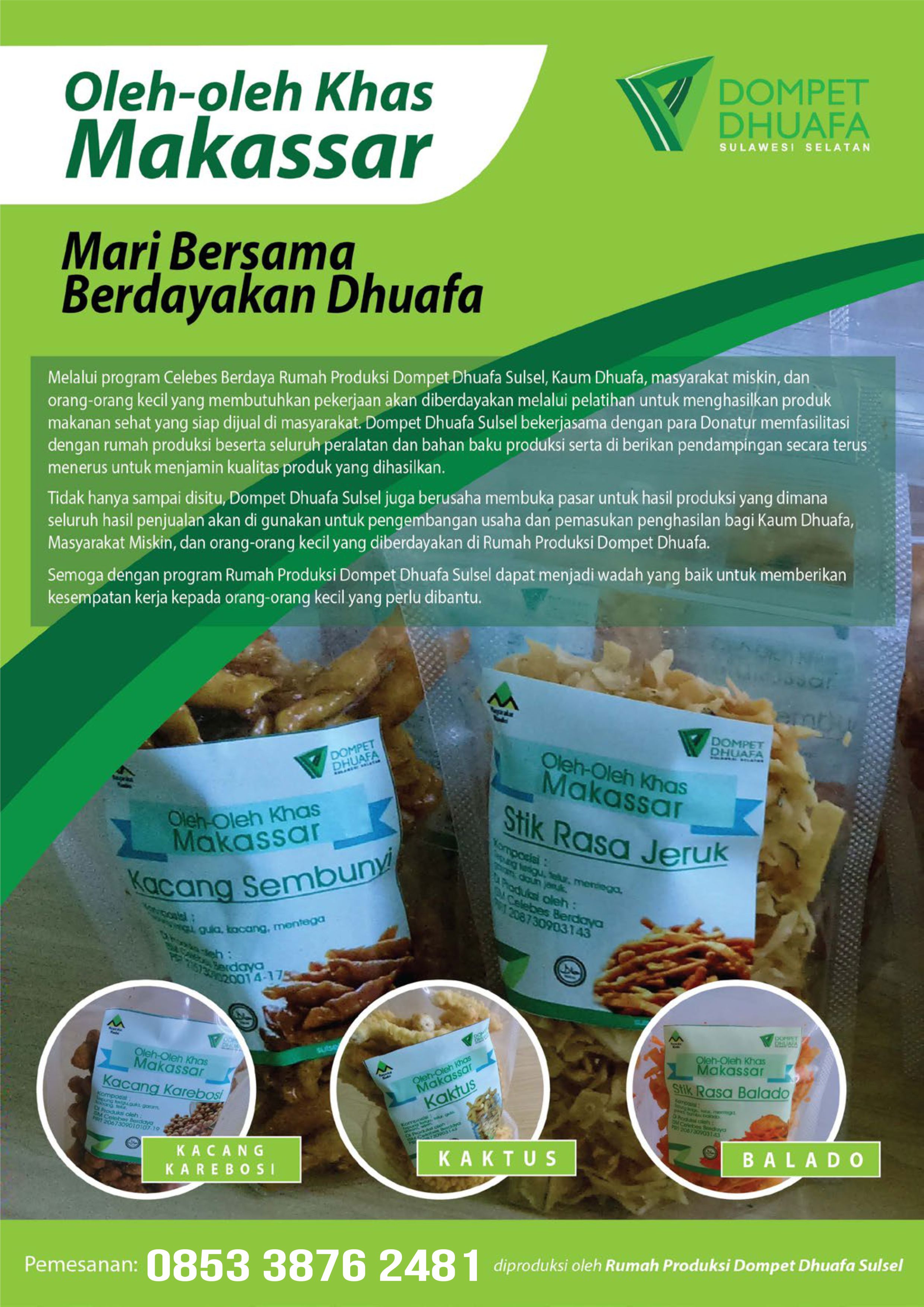 Bantu ibu-ibu dhuafa dengan membeli produk mereka, hubungi 0853 3876 2481