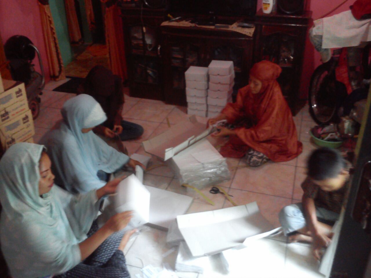 Kali ini kelompok ibu-ibu yang diberdayakan sebanyak 5 orang dalam satu kelompok. Di rumah sangat sederhana ini digunakan untuk memproduksi produk makanan berupa Stik, Kacang Sembunyi, Kue Kaktus, dan Kacang Karebosi. Namun produksinya, biasanya di rumah Bu Salma (Stik, Kacang Sembunyi), di rumah Bu Aisyah (Kue Kaktus), dan di rumah Bu Kania (Kacang Karebosi). Meski diproduksi di rumah yang sangat sederhana namun kualitas kebersihan dan kualitas rasa dari produksi ibu-ibu dhuafa sangat terjamin dan tentunya halal melalui pendampingan Dompet Dhuafa Sulsel.