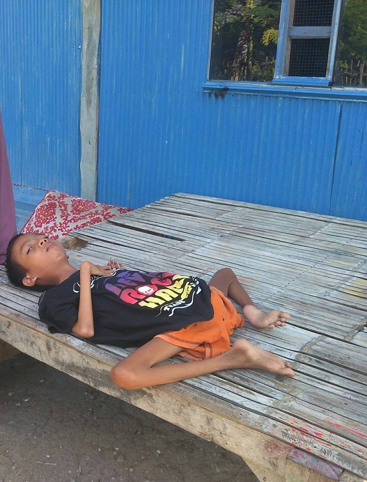 Senin, 31 oktober 2016 kembali relawan Dompet Dhuafa Sulawesi selatan bertandang ke rumah calon penerima manfaat. Rengga Remaja berusia 14 tahun, warga kelurahan Bontotangnga kecamatan Tamalatea, Kab. Jeneponto, terbaring lemah di rumahnya tak bisa beraktifitas normal seperti teman sebayanya. Akibat gizi buruk dan lumpuh yang dideritanya.