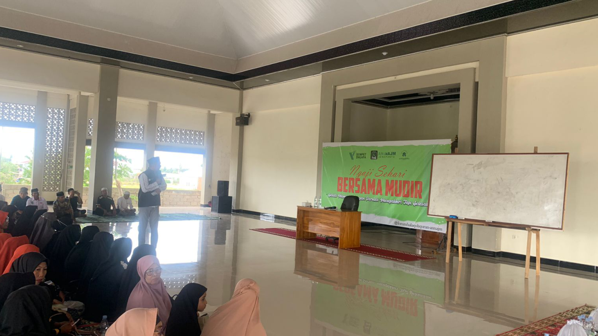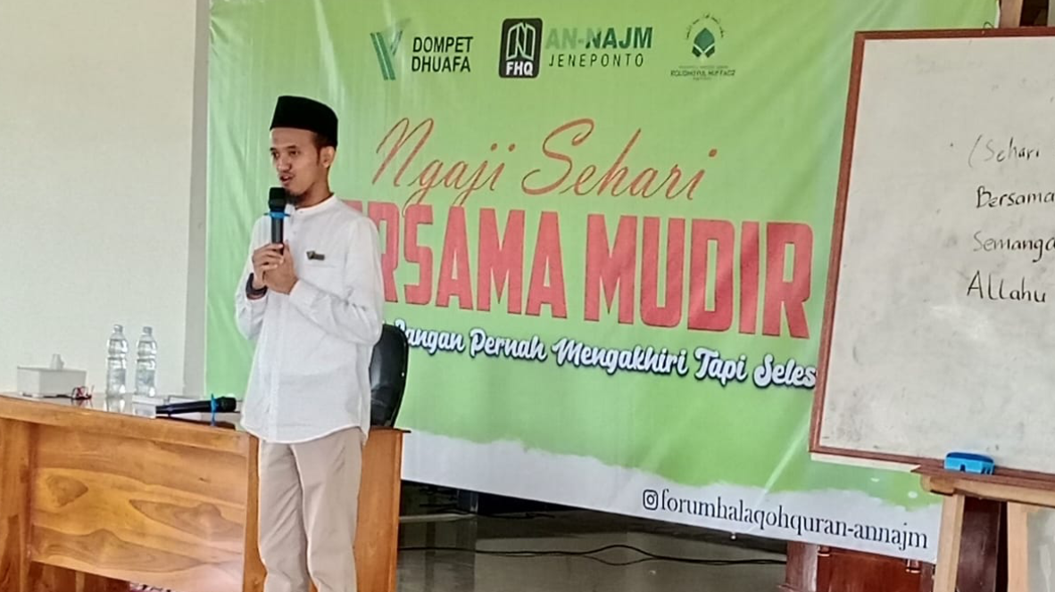Jeneponto, 25 Agustus 2024– Forum Halaqah Quran (FHQ) An Najm Jeneponto sukses menyelenggarakan kegiatan “Sehari Ngaji Bersama Mudir” pada hari ini di Masjid An Najm, Jeneponto. Acara ini digelar untuk memenuhi keinginan para santri yang ingin menimba ilmu langsung dari Mudir, Ustaz Abdurrahman Al Hafizh, mengingat terbatasnya waktu yang beliau miliki.